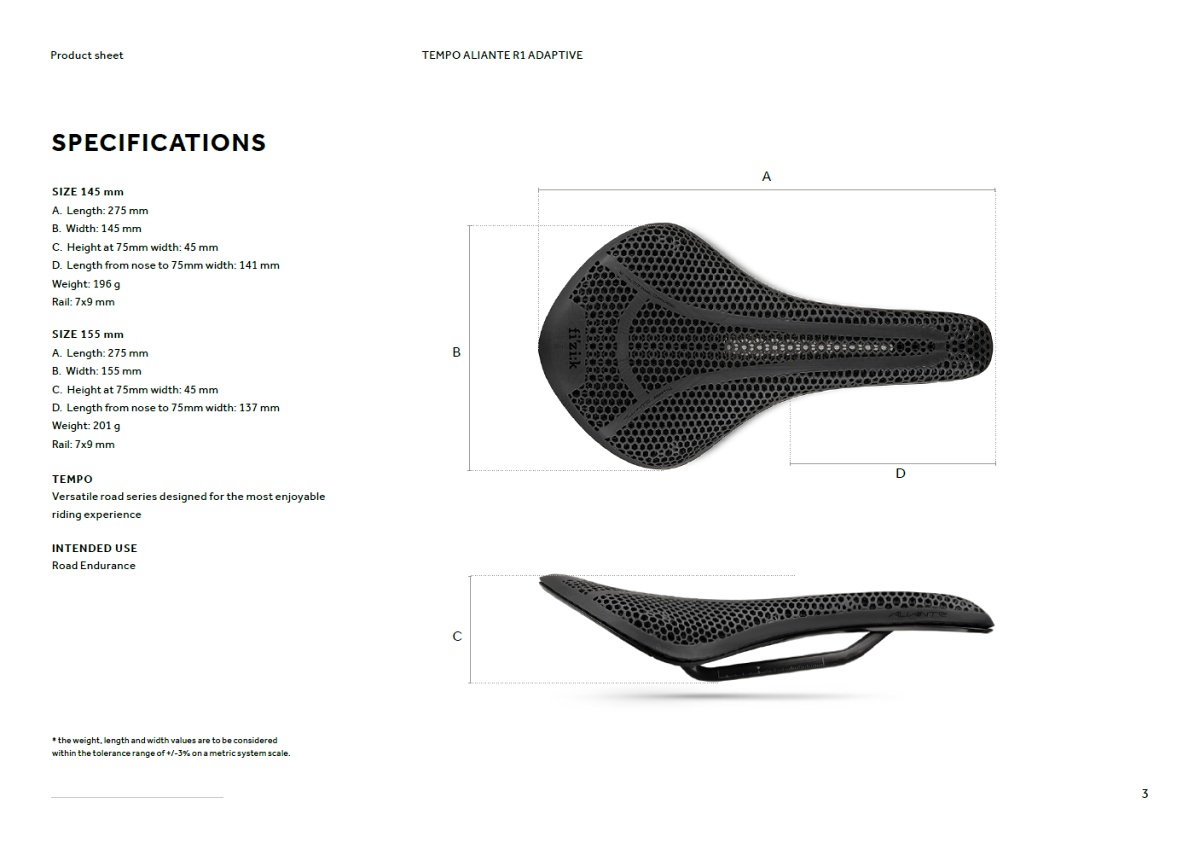 Novinkou je každopádně fakt, že se této moderní „3D-printed“ podoby dočkala i klasická řada Fizik Aliante. Tedy sedla nikoliv plochá, ale s komfortním „zvlněným profilem“ (waved profile) určená primárně pro vytrvalostní silniční cyklistiku, která si ale občas najdou cestu i na gravel nebo MTB. Nové sedlo Fizik Tempo Aliante R1 (R3) Adaptive se tak nově zařadí mezi další modely z řady Adaptive jako je Fizik Antares, Versus nebo Argo (jediný primárně MTB model).