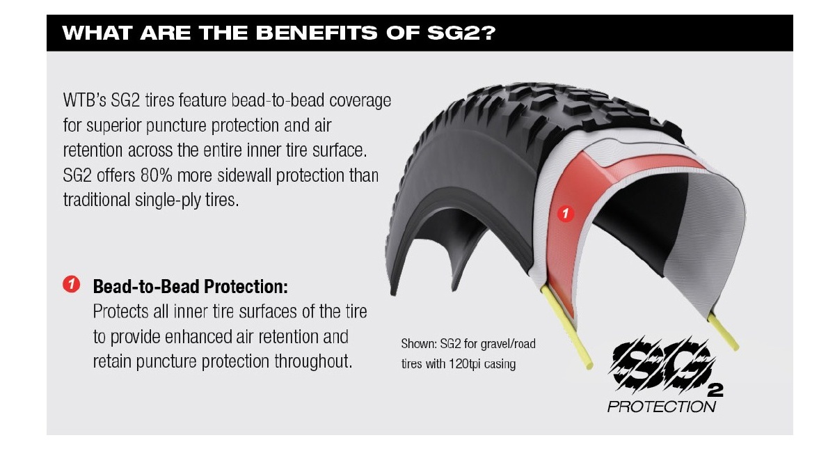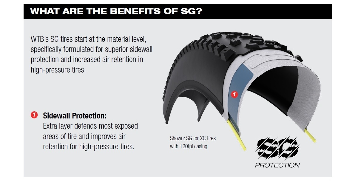 Jedním z tajemství nových plášťů WTB Macro je systém ochrany SG Protection tvořený vulkanizovanou nylonovou pleteninou, s přídavnou ochranou boků pláště, aniž by to mělo vliv na žádanou poddajnost celé pneumatiky. Díky použití plochých vláken, v porovnání s tradičními kulatými, je možné dosáhnout znatelné úspory hmotnosti, stejně tak i podpořit další požadované jízdní vlastnosti.