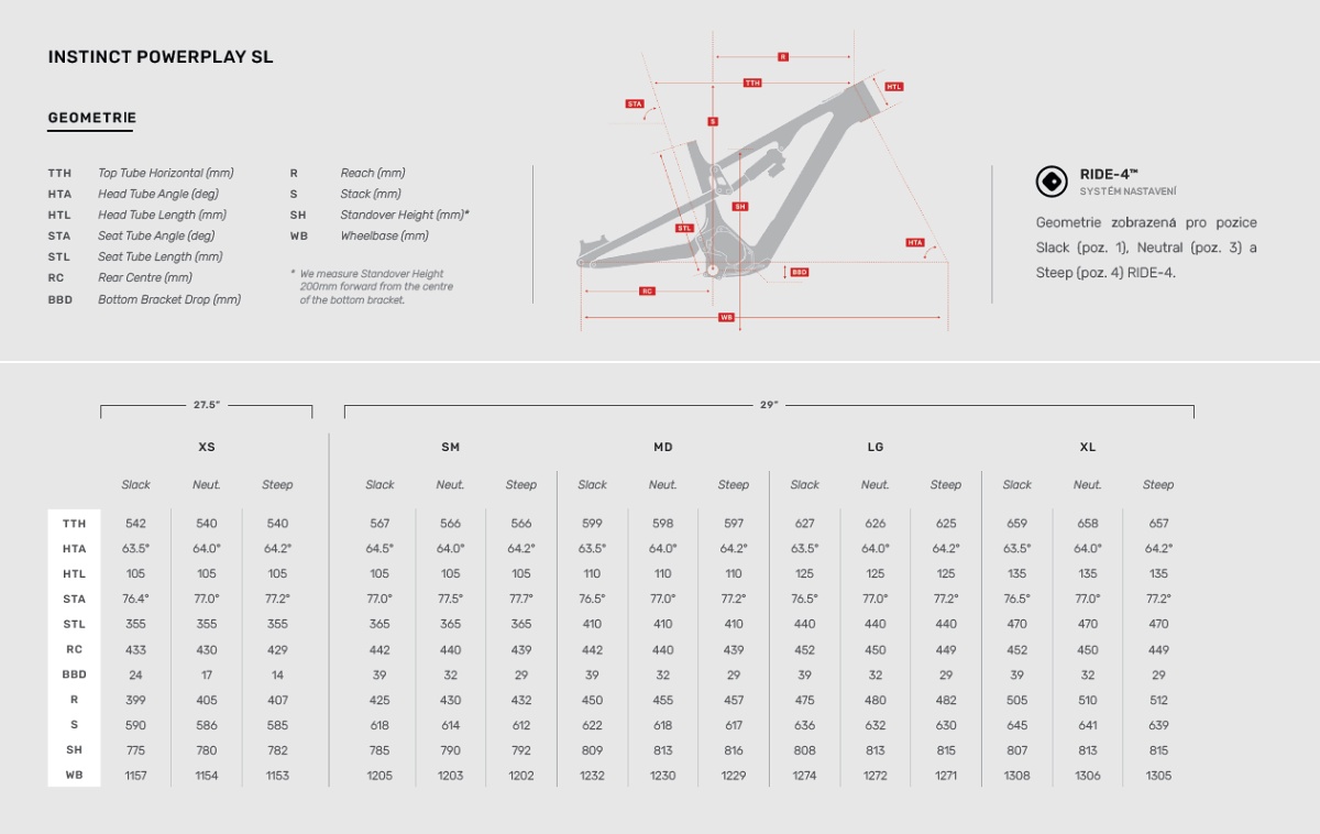 - Systém pro nastavení geometrie: RIDE-4™ (úhel hlavy 63,5°, 64°, 64,2°)