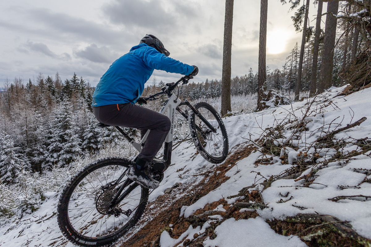 Tento eBike je dostatečně klidný a jistý ve výjezdech, technicky skutečně náročné nevyjímaje. Dokáže být zároveň příjemně hravý, obratný a pohotově reagující na běžných „zauzlovaných“ trailech. Stejně tak se s velkou chutí popere i s techničtějšími sjezdovými pasážemi. Jeho geometrie se přitom v obecné rovině kloní trochu více k agresivnější části spektra. Dost se tak podobá svému nemotorovému bratru, ač je o poctivých 6 kg těžší!